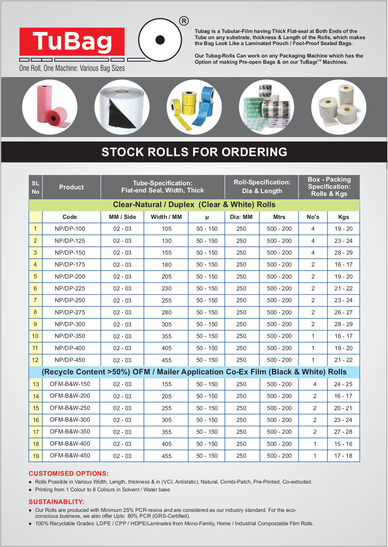 TuBag Rolls Stocklist